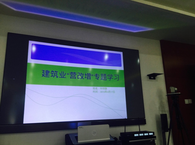 會上,財務資產部稅務會計人員收集相關資料并制作了PPT進行了宣貫,對“營改增”試點全面推開的背景,“營改增”的應稅服務范圍、稅率及征收率、應納稅額的計算、稅收優(yōu)惠、對建筑業(yè)稅負及利潤方面的影響等有關知識進行了全面而系統(tǒng)的講解,并對對與會人員提出的問題做出了細致的解答并給出了相關建議及應對策略。